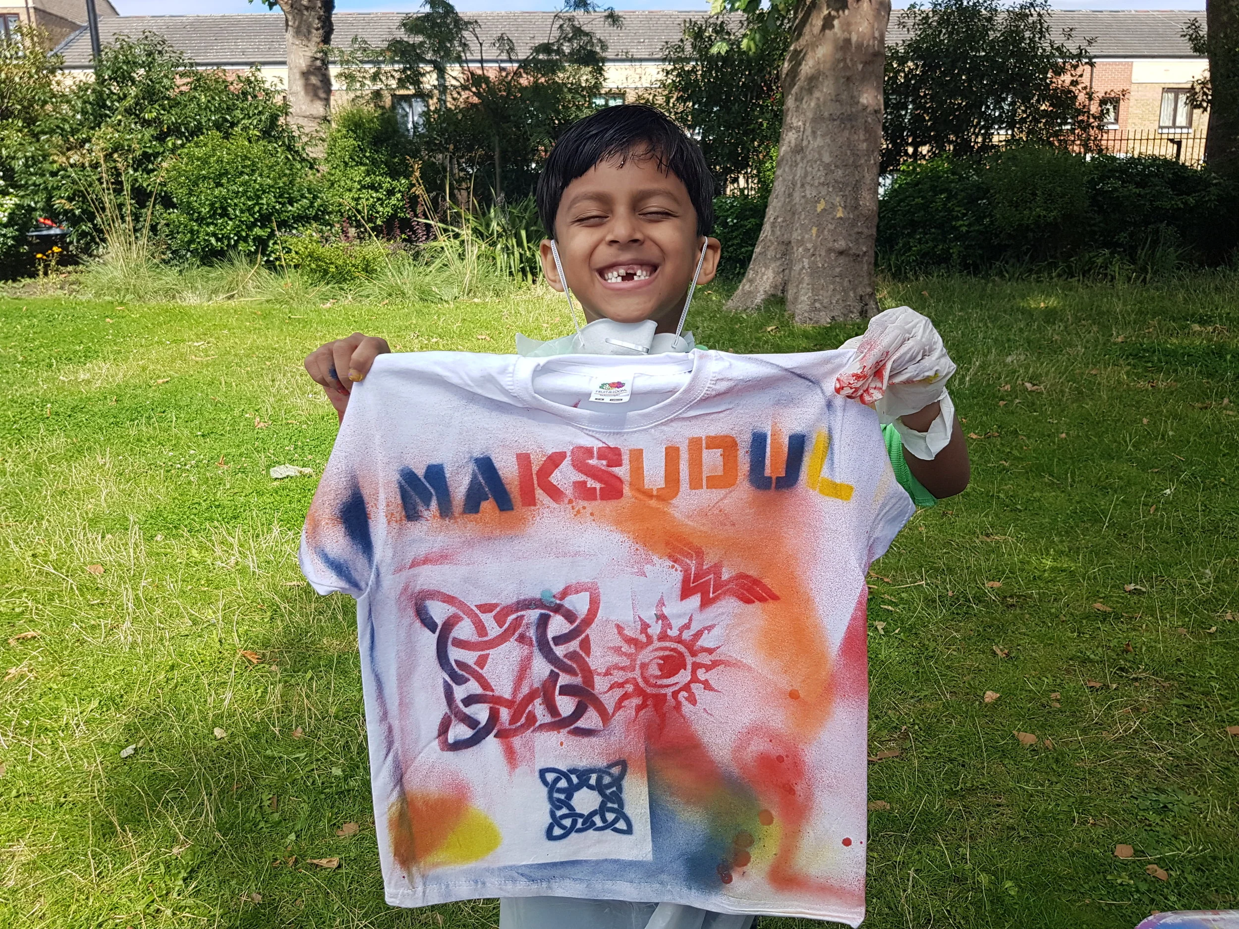 I was employed by the Young Urban Arts Foundation, to run some T-Shirt painting workshops, in 3 different locations over the summer. It was so incredible to watch the young people become inspired to play with the paint and learn different techniques to create their own unique designs. Please click on the link to find out more about the organisation, they are doing wonderful things! Was an honour to work for them -thanks to Sonority Turner for the hook up!