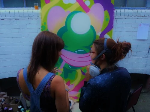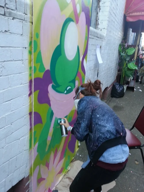 Pins, Artista and I painted at The Big Noise Festival this June. In the end, they raised £15,000 for the Big Issue Foundation on with the event at the Bussey building/CLF Art Cafe, featuring 300 artists.